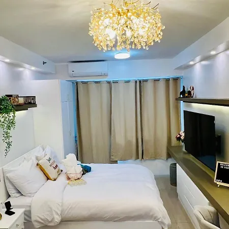 ベッドルーム1室のCq House Luxe Stay With Pool View Near Moa & Airport マニラ市はパセオ・パリソック・サークルから歩いて25分以内に位置し、ビジネスにもレジャーにもWi-Fiを利用することができます。